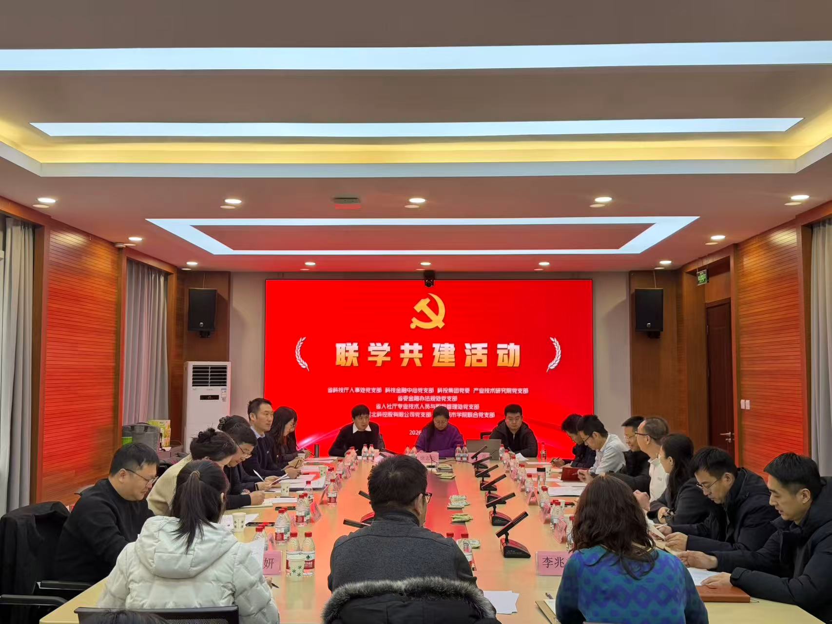 为推动党建与业务深度融合,促进京冀两地资源对接与合作落地,2026年1月29日,北京北科控股有限公司党支部联合河北省有关单位开展跨区域支部联学共建活动。河北省科技厅人事处党支部、河北省委金融办法规处党支部、河北省人社厅专业技术人员与职称管理处党支部、河北省科技金融中心党支部、河北省科投集团党委、河北省产研院党支部、北京城市学院联合党支部等七个党组织参与活动。