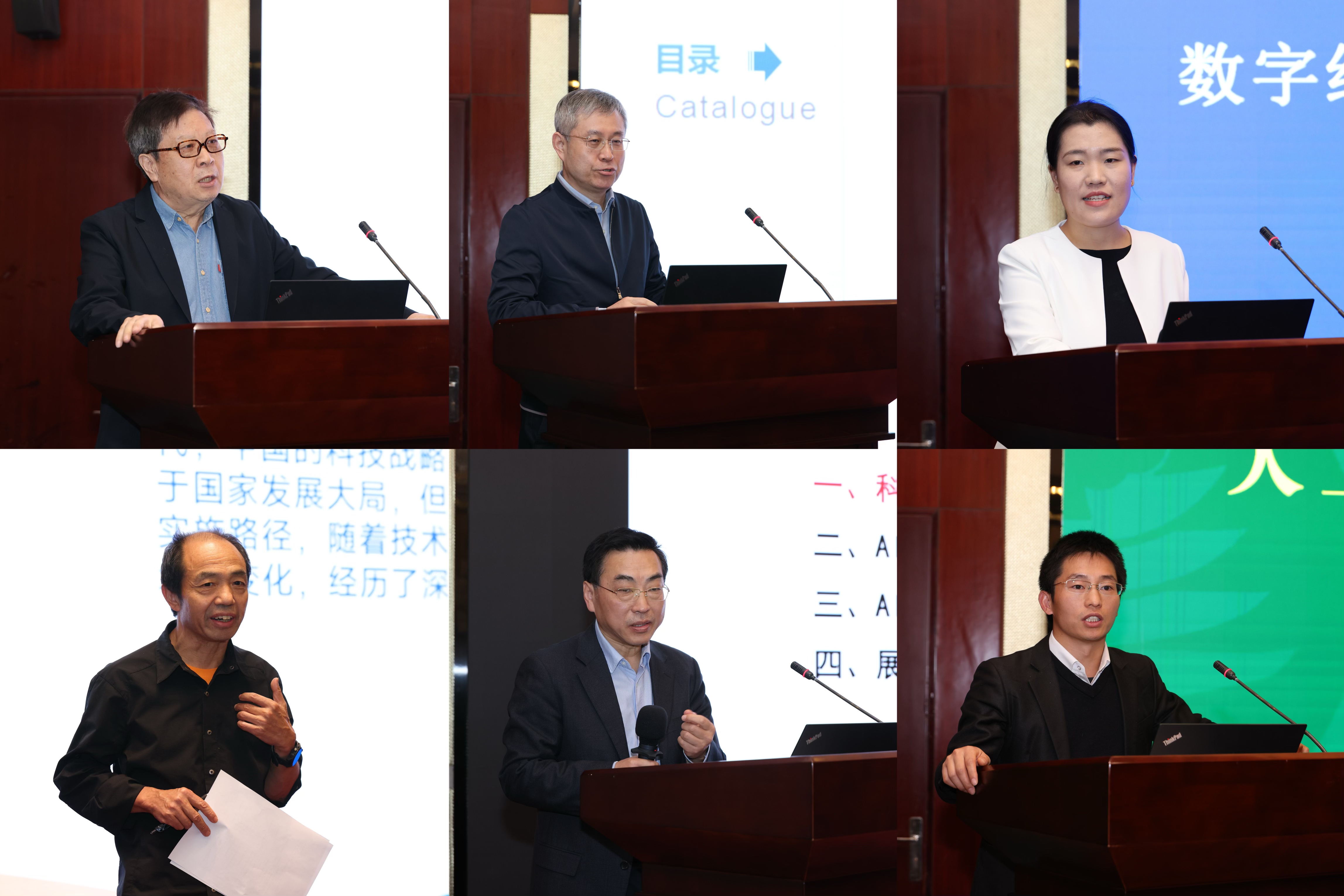 国家科技部原调研室主任、研究员胥和平,北京市长城企业战略研究所所长武文生,腾讯集团法务总监王鑫,中国科学院大学公共政策与管理学院特聘教授、研究会副理事长刘云,中国科技发展战略研究院研究员、研究会副理事长张九庆,北京理工大学公共管理系主任、研究员、博导尹西明等6名专家,围绕人工智能时代科技战略与政策的走向与变革进行了主旨演讲。