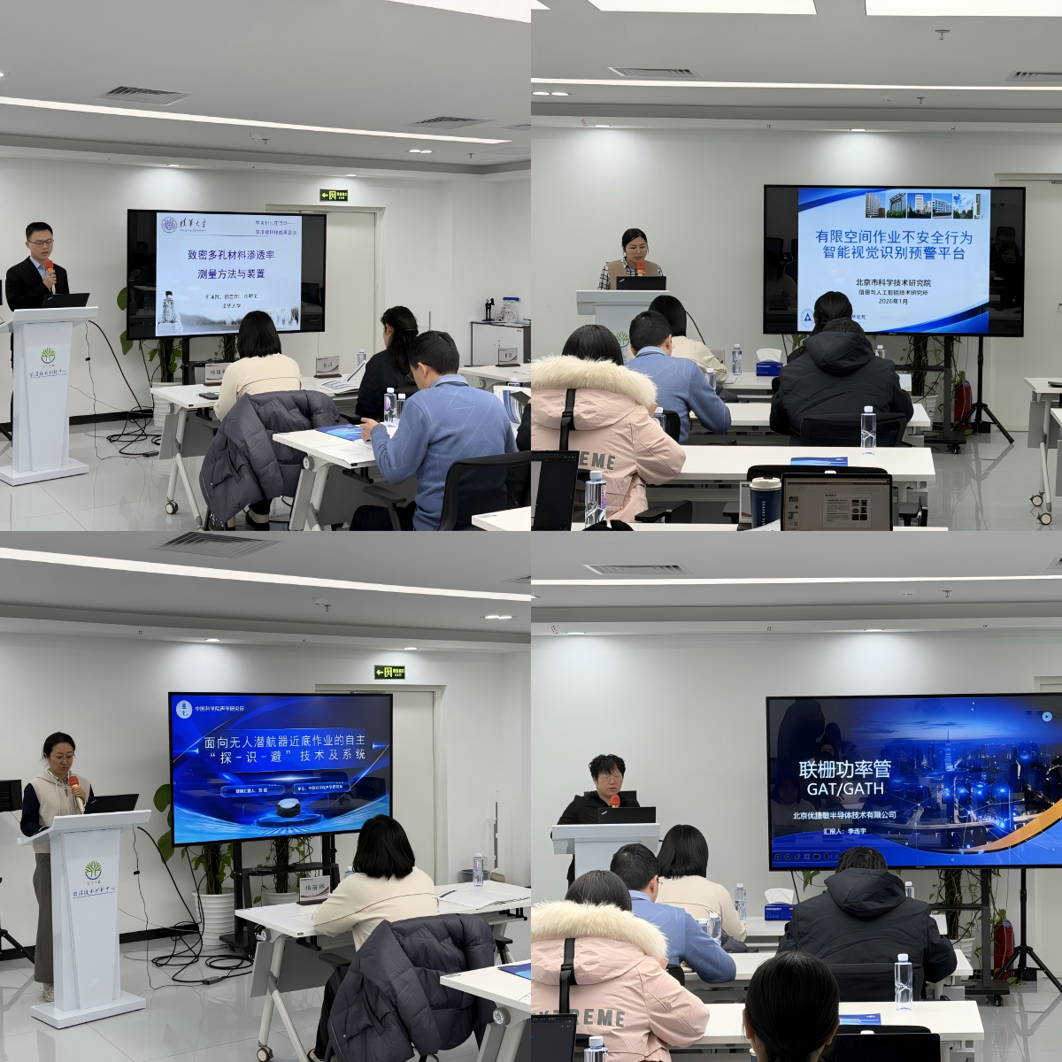 活动伊始,北京科技人才发展中心的王子今围绕“北京市技术经纪职称申报政策”开展政策解读,为科研人员提供了实操指导,强化了政策对接的“牵引器”作用。本次专场活动重点推介了四项来自北京发明协会推荐的前沿科技成果,分别是清华大学“极端致密材料的渗透率测量方法与装置”、北科院信息与人工智能技术研究所“有限空间作业不安全行为智能视觉识别预警平台”、中国科学院声学研究所“面向无人潜航器近底作业的自主‘探-识-避’技术及系统”、北京优捷敏半导体技术有限公司“联栅功率管(GAT/GATH)”。与会专家和投资机构围绕技术成熟度、市场前景及转化风险等关键维度展开了深入交流与互动,有效推动了科技成果与产业需求的高效对接。