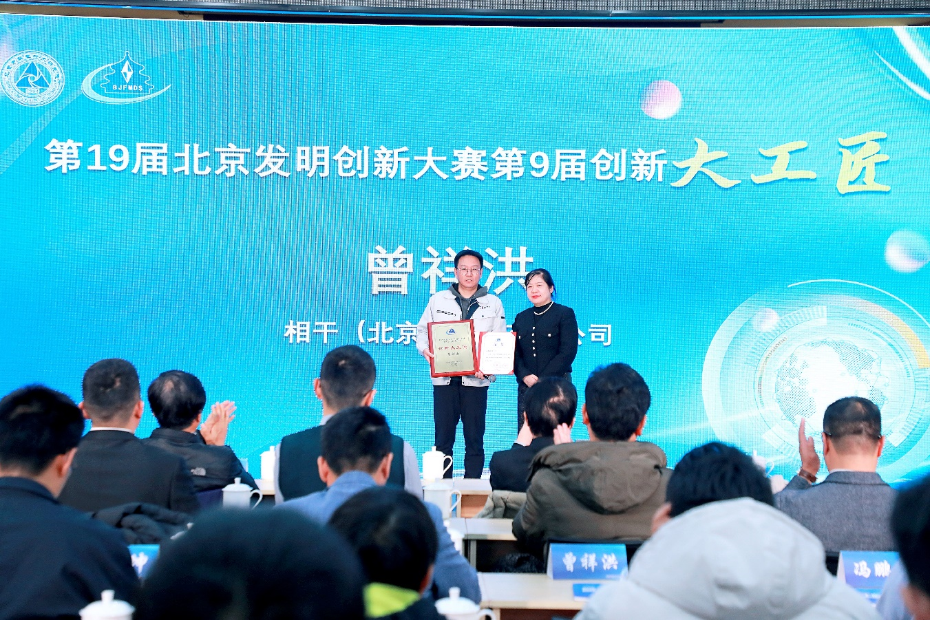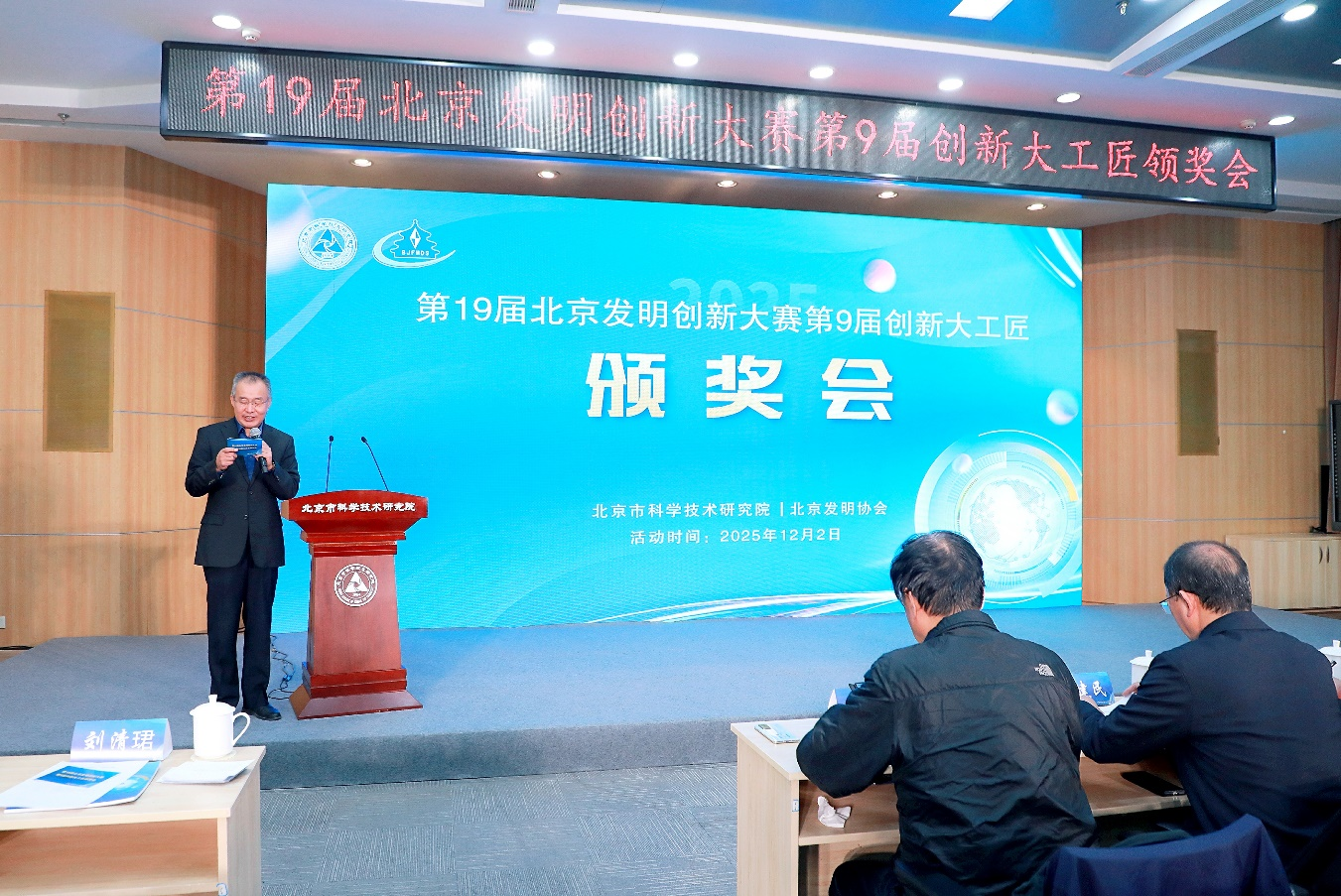 12月2日下午,北京发明协会在北科大厦举行第19届北京发明创新大赛第9届创新大工匠颁奖会。中国发明协会党委书记余华荣,中国发明协会执行秘书长李桂华,北京市科学技术研究院院长伍建民,北京发明协会副理事长、国际欧亚科学院院士赵新力,清华大学科研院科研成果管理办公室主任孟宪飞等出席会议并颁奖。北京市科学技术研究院原副院长、北京发明创新大赛评审委员会主任委员刘清珺主持活动。来自各行各业的创新人物代表齐聚一堂,共同见证这充满创新活力与奋进激情的美好时刻。