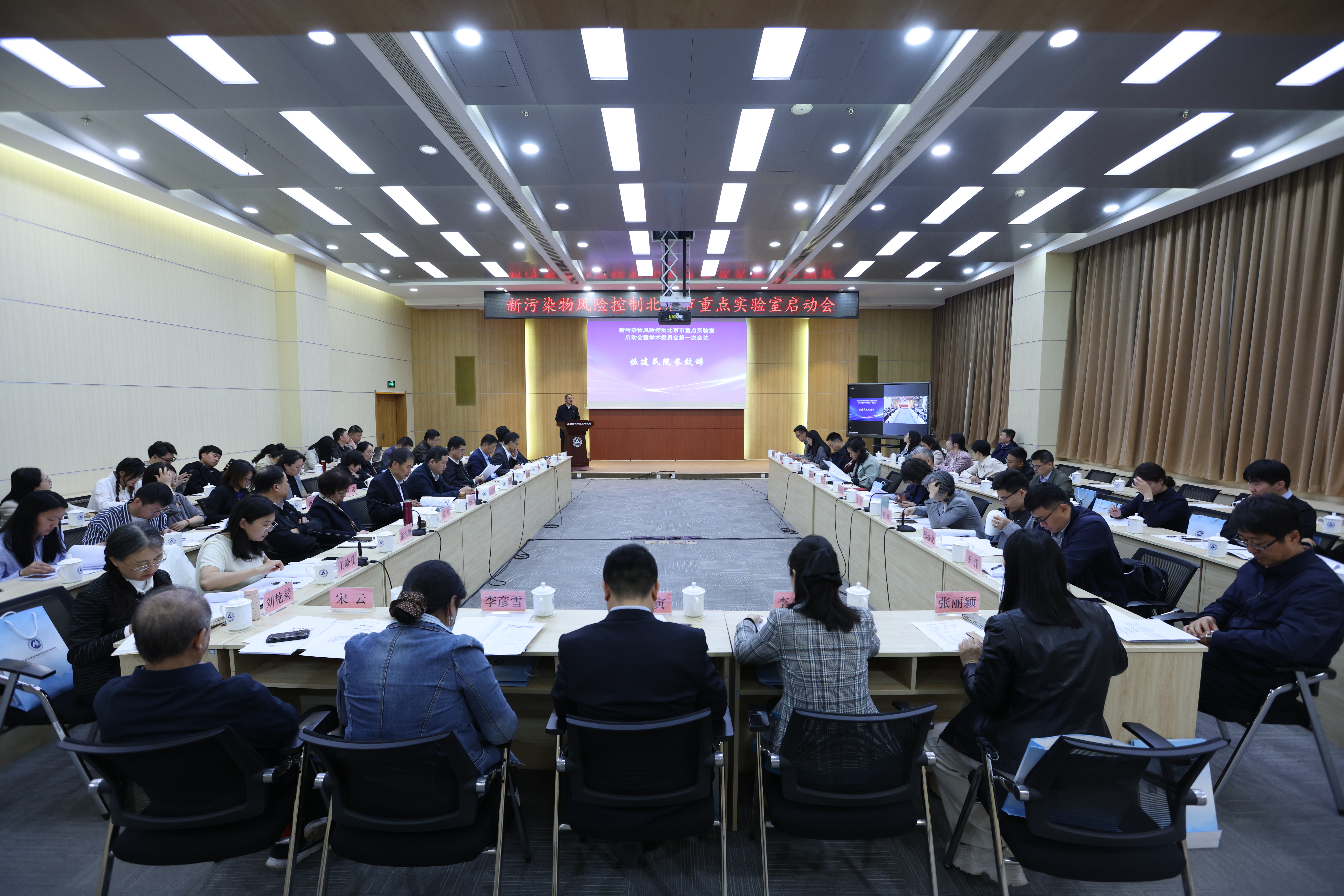 4月16日上午,新污染物风险控制北京市重点实验室启动会暨学术委员会第一次会议在北京市科学技术研究院(以下简称“北科院”)顺利召开。中国工程院院士曹宏斌,北科院党组副书记、院长伍建民,北京城市排水集团有限责任公司总经理张荣兵,生态环境部、国家环境分析测试中心、北京市生态环境局、北京市科技创新促进中心的领导、实验室学术委员会成员、共建单位代表,北科院相关处室、内设机构领导和科研骨干等50余人参加会议。