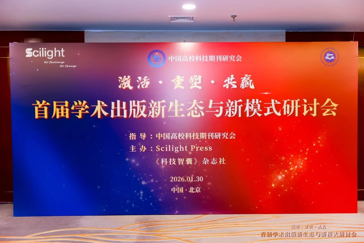 “旧岁乘风去,新元踏歌来。” 1月30日,《科技智囊》杂志社联合国际出版新锐机构Scilight Press在京主办“首届学术出版新生态与新模式研讨会”暨“2026科技期刊高质量创新与发展高端论坛”。本次活动由中国高校科技期刊研究会指导,近300位业界嘉宾齐聚一堂,共同探讨开放科学背景下学术出版的变革路径与发展机遇。