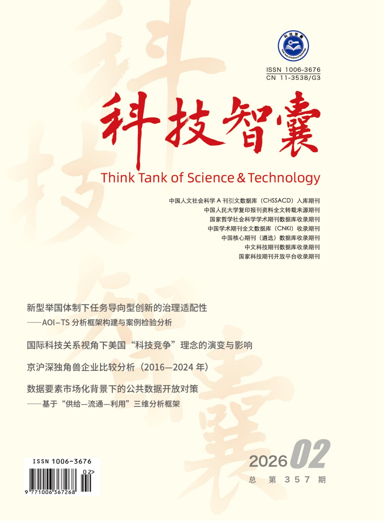 关键词:新型举国体制;任务导向型创新;治理适配性;新质生产力;AOI-TS框架