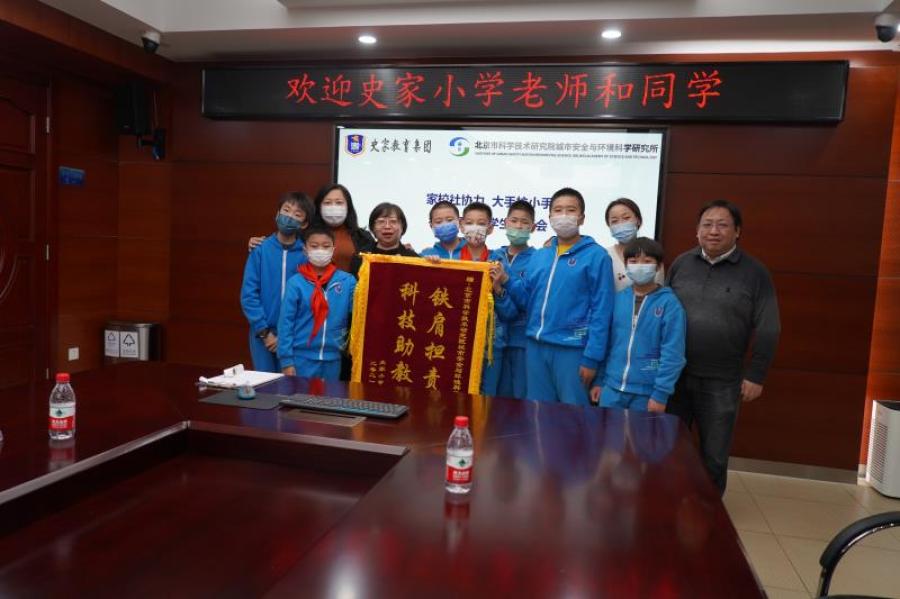 12月17日,北科院城安所党委书记、所长汪彤带领国家劳动保护用品质量检验检测中心的工作人员与史家胡同小学的老师、同学们进行了一场别开生面的《科技工作者与小学生的见面会》。见面会上,史家胡同小学的老师、同学们将一面写着“铁肩担责任 科技助教育”的锦旗送到了北科院城安所,衷心感谢北科院城安所国家劳动保护用品质量检验检测中心对该校《口罩助力美好生活》综合实践活动课程的大力支持和帮助。双方达成了初步的科普教育合作意向。