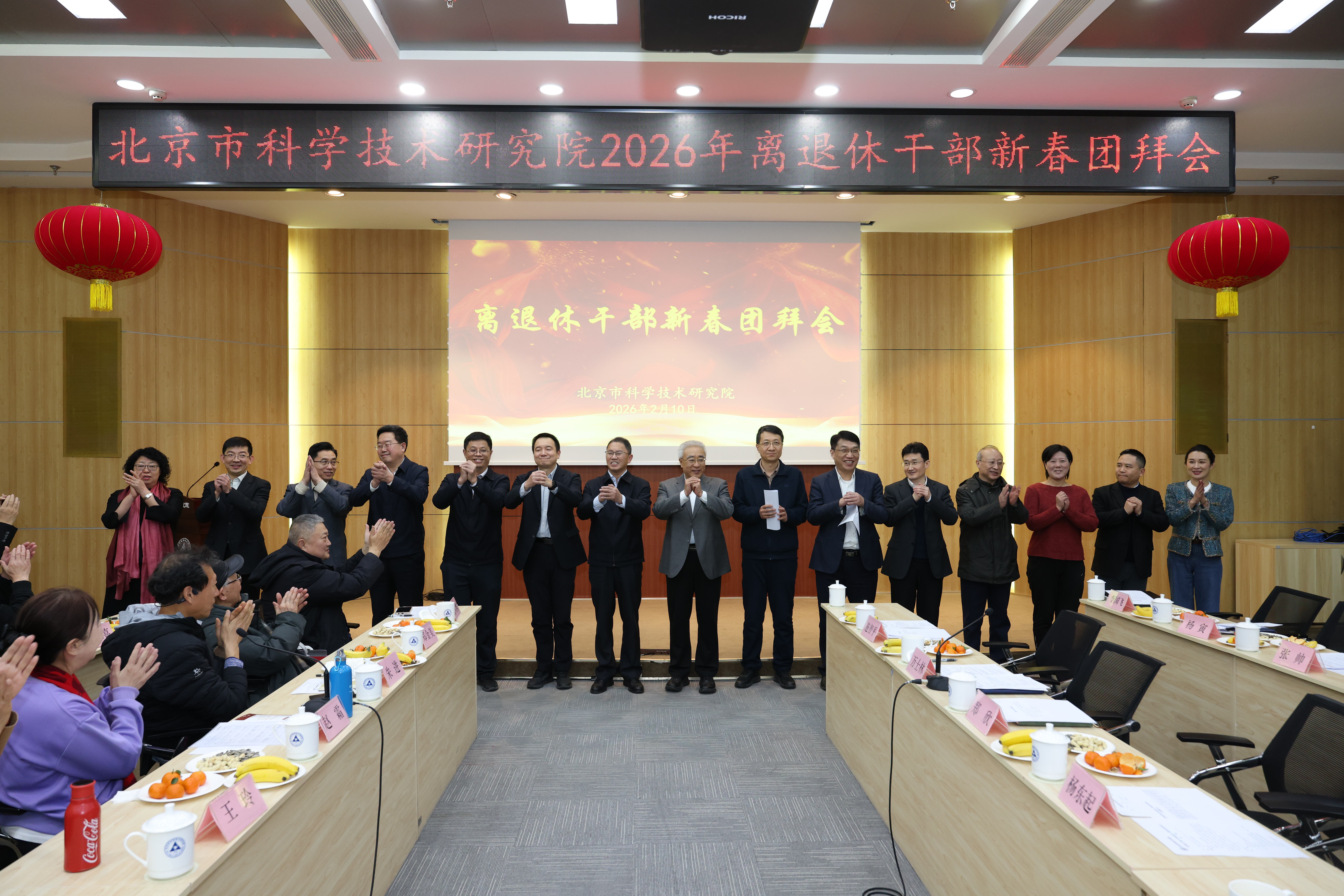 龙马精神启新岁,情深意长暖北科。2月10日上午,在丙午马年新春佳节即将到来之际,北京市科学技术研究院(以下简称“北科院”)2026年离退休干部新春团拜会在温馨祥和、欢声笑语的氛围中举行。党组书记刘晖,党组副书记、院长伍建民及全体领导班子成员,院离退休干部工作领导小组成员处室负责人与50余位离退休老同志代表欢聚一堂,共迎新春、畅叙情谊、同绘蓝图。