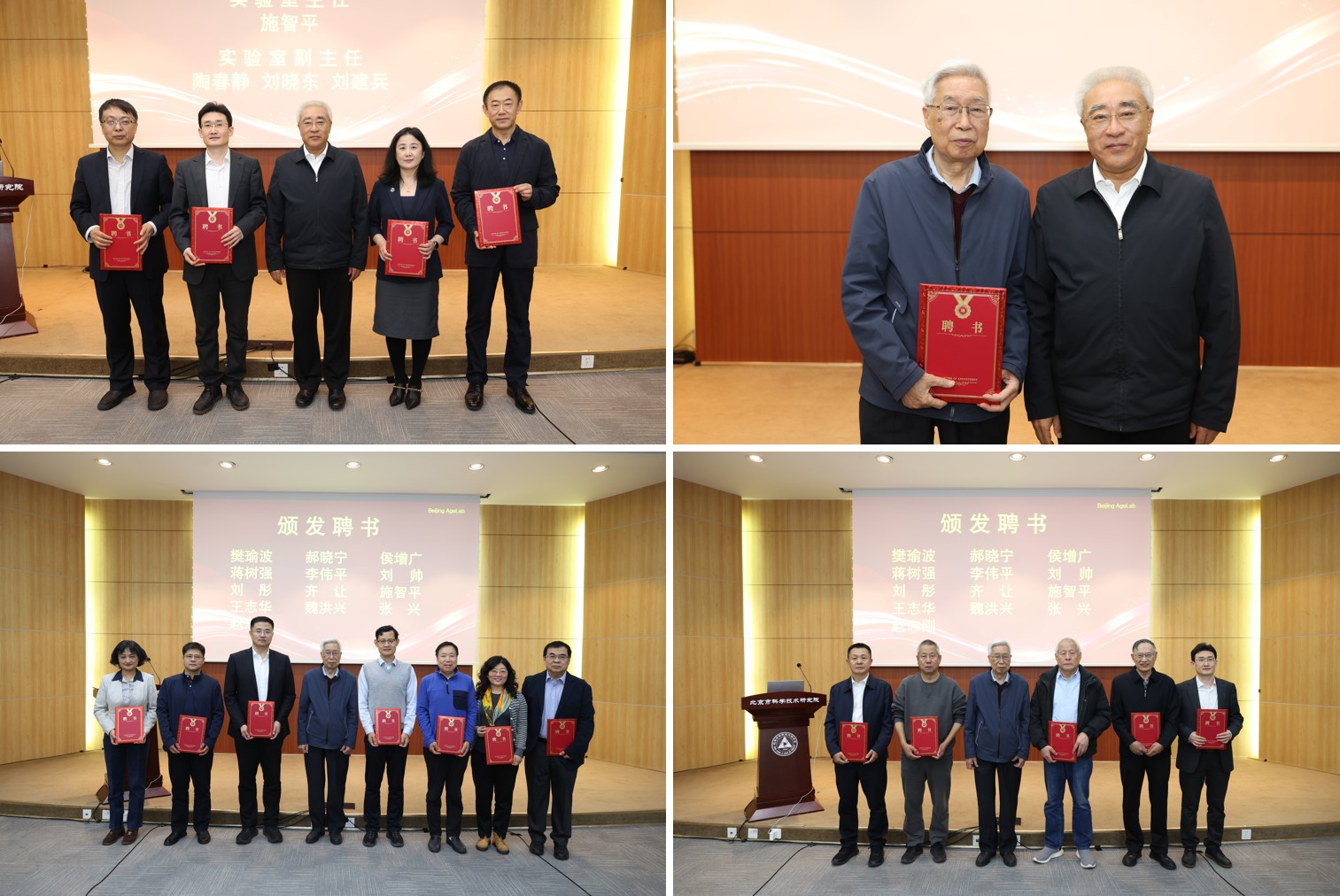为现场参会的实验室领导班子及学术委员会颁发聘书 实验室主任、副主任领导班子(左上)、实验室首届学术委员会主任(右上) 现场参会的学术委员会委员(左下,右下)