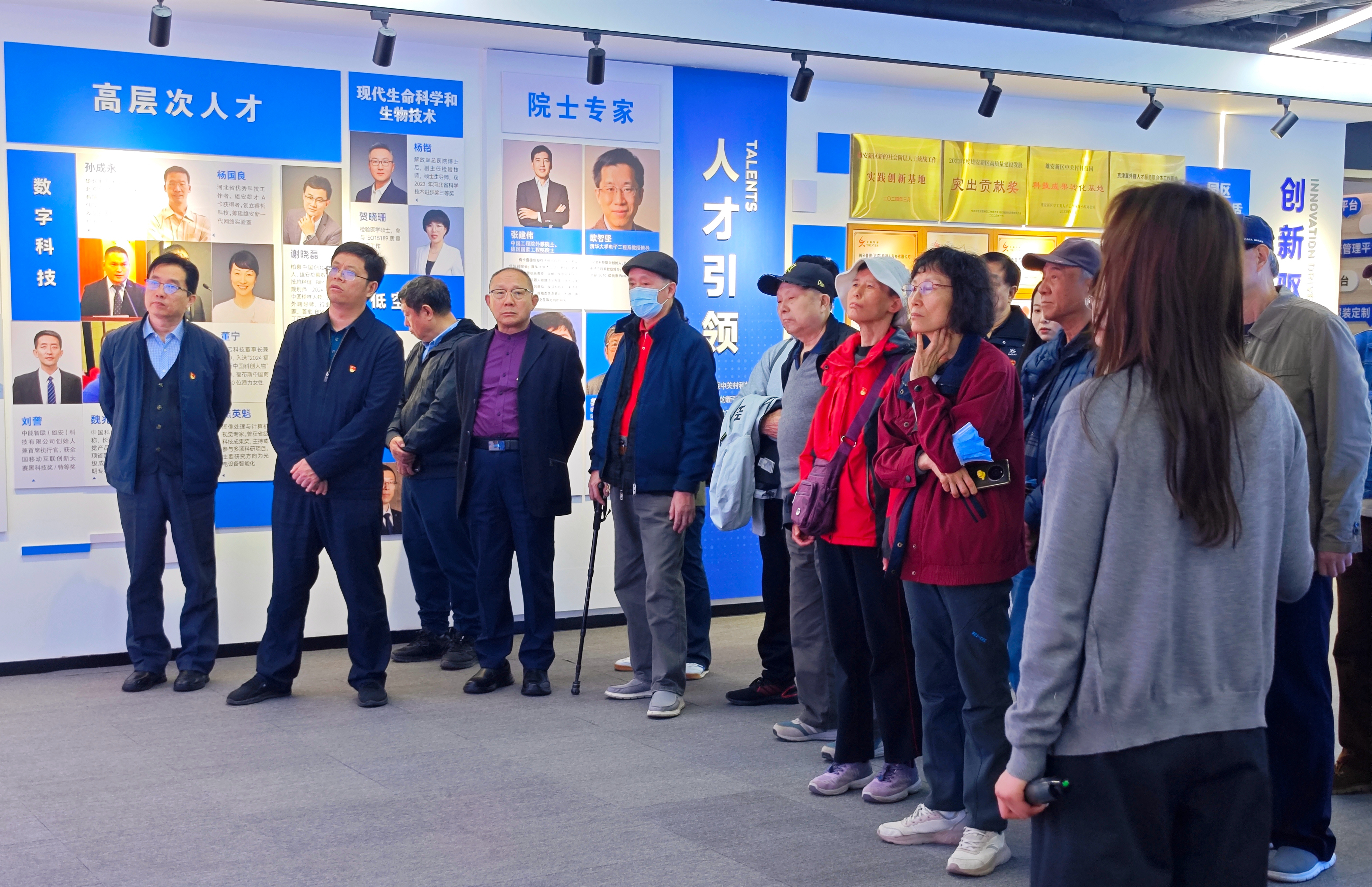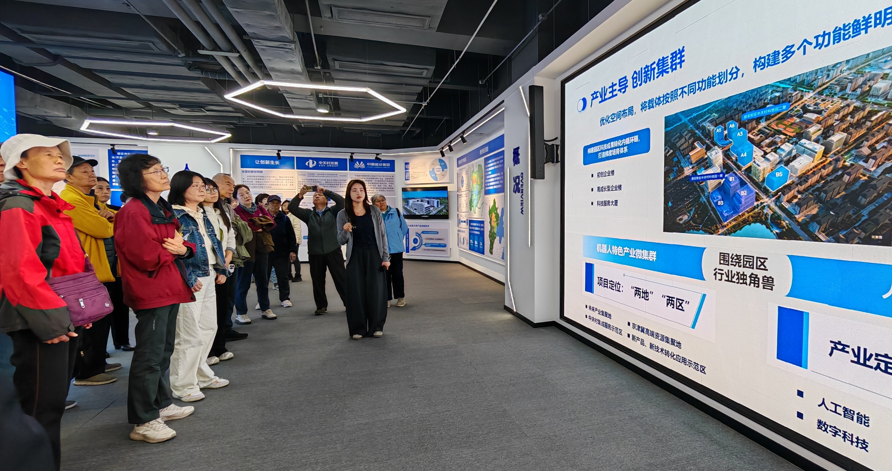 在雄安新区中关村科技园,老同志们分组参观了展厅和园区代表性企业。作为京冀协同创新的重要载体之一,自2023年揭牌以来,园区以中关村创新基因驱动,重点布局人工智能、数字科技、生物技术、低空经济等技术赛道,助推更多科技成果从实验室走向生产线。参观中,老同志们看到,园区已集聚275家科技型企业,形成“上下楼就是上下游”的产业生态,企业间协同创新氛围活跃,技术转化周期显著缩短。老同志们深有感触,边走边议,围绕北京创新资源如何与雄安发展蓝图实现更深层次的双向奔赴、交换了各自的体会与见解。